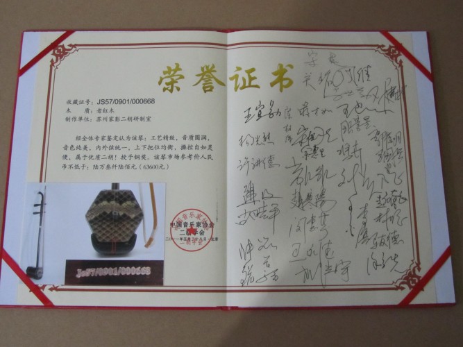 二胡制作大師丁家彭先生1949年出生樂器世家,17歲隨其祖父學(xué)琴藝,并深得精髓,其聰穎好學(xué),悉心鉆研與 探求二胡制作,博得同行的欽佩贊許,更得了許多知名演奏家的稱贊,充分認(rèn)識到二胡制作每個環(huán)節(jié),都對二胡制作都有影響力,因此對二胡的選材,選料,蟒皮都十分嚴(yán)格,二胡整體穩(wěn)定性良好,環(huán)境干擾影響極小。